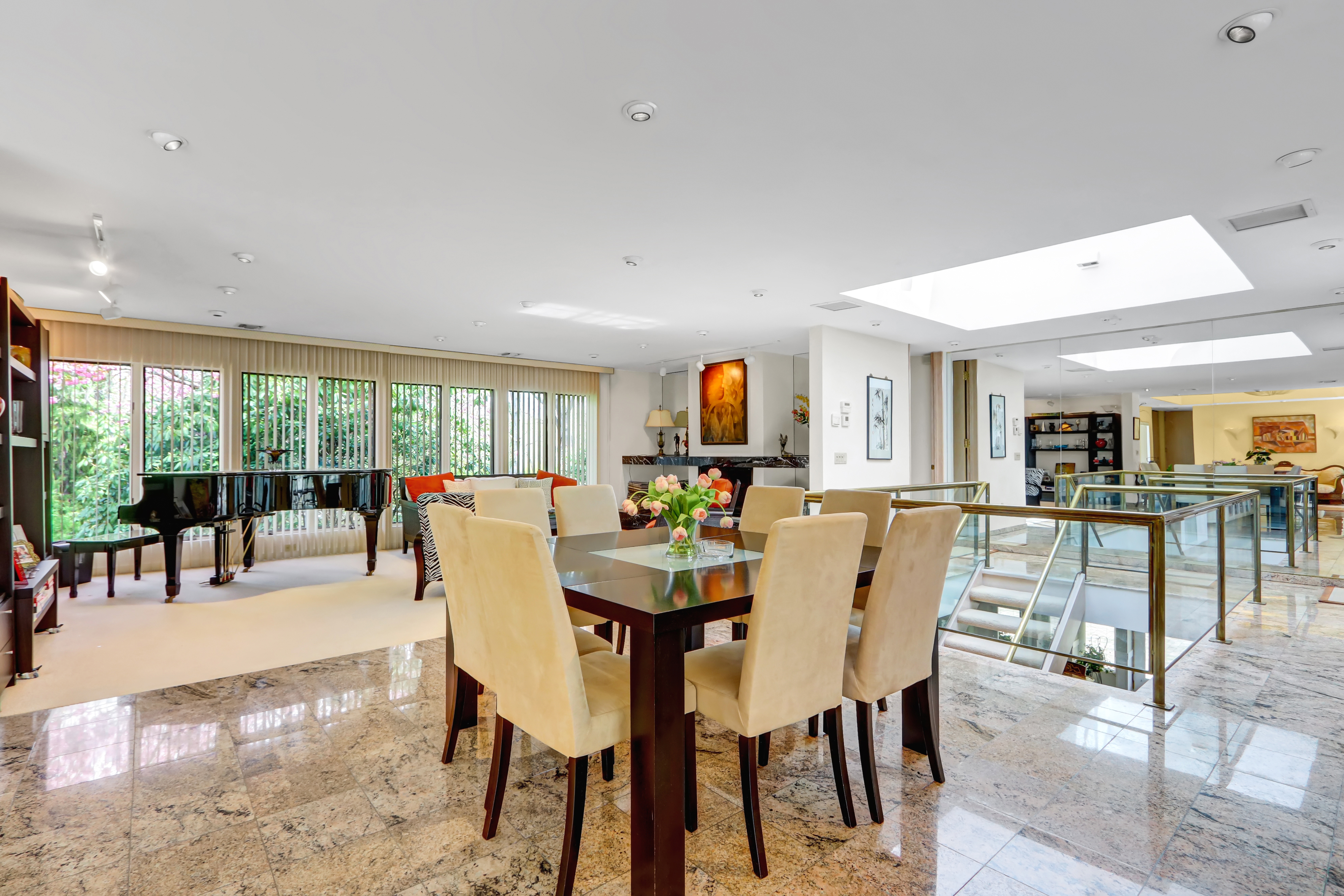 Truly Exceptional One-of-a-Kind Home in Belle Terre — Custom-built 3,300 sq ft two-level home on 1.2 acres with an ultra-open floor plan blending traditional and contemporary design. Features include a dramatic atrium dome foyer, glass/brass floating staircase, chef’s kitchen with double islands, granite floors, and custom cabinetry, all opening to a 2,000 sq ft multi-level deck with wisteria-covered pergola and built-in gas BBQ. Main level offers a primary suite with marble bath, guest suite, formal dining with marble gas fireplace, great room, and laundry. Lower level boasts porcelain floors, 37x25 family room, full Butler’s kitchen, 3rd bedroom with ensuite bath, and walkout to a brick patio. Highlights: new roof, gas hot air heat, 2-zone central air, circular drive, double garage, in-ground sprinklers, hi-hats under eaves, mature landscaping with specimen trees. Belle Terre amenities include 3 beaches, kayak storage, constable service, parks, and sports court. Walk to Port Jeff Village, country club, and ferry/train.
