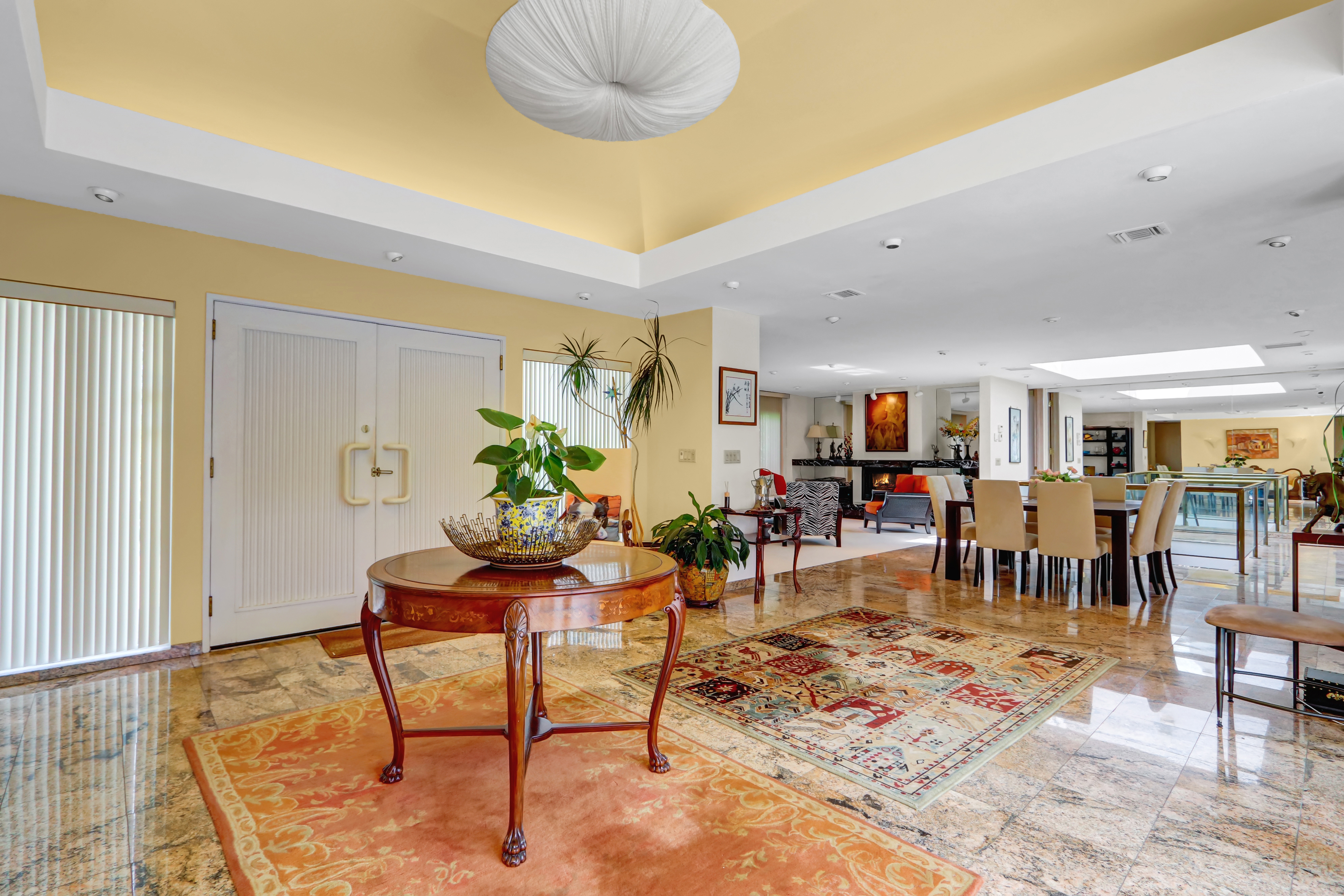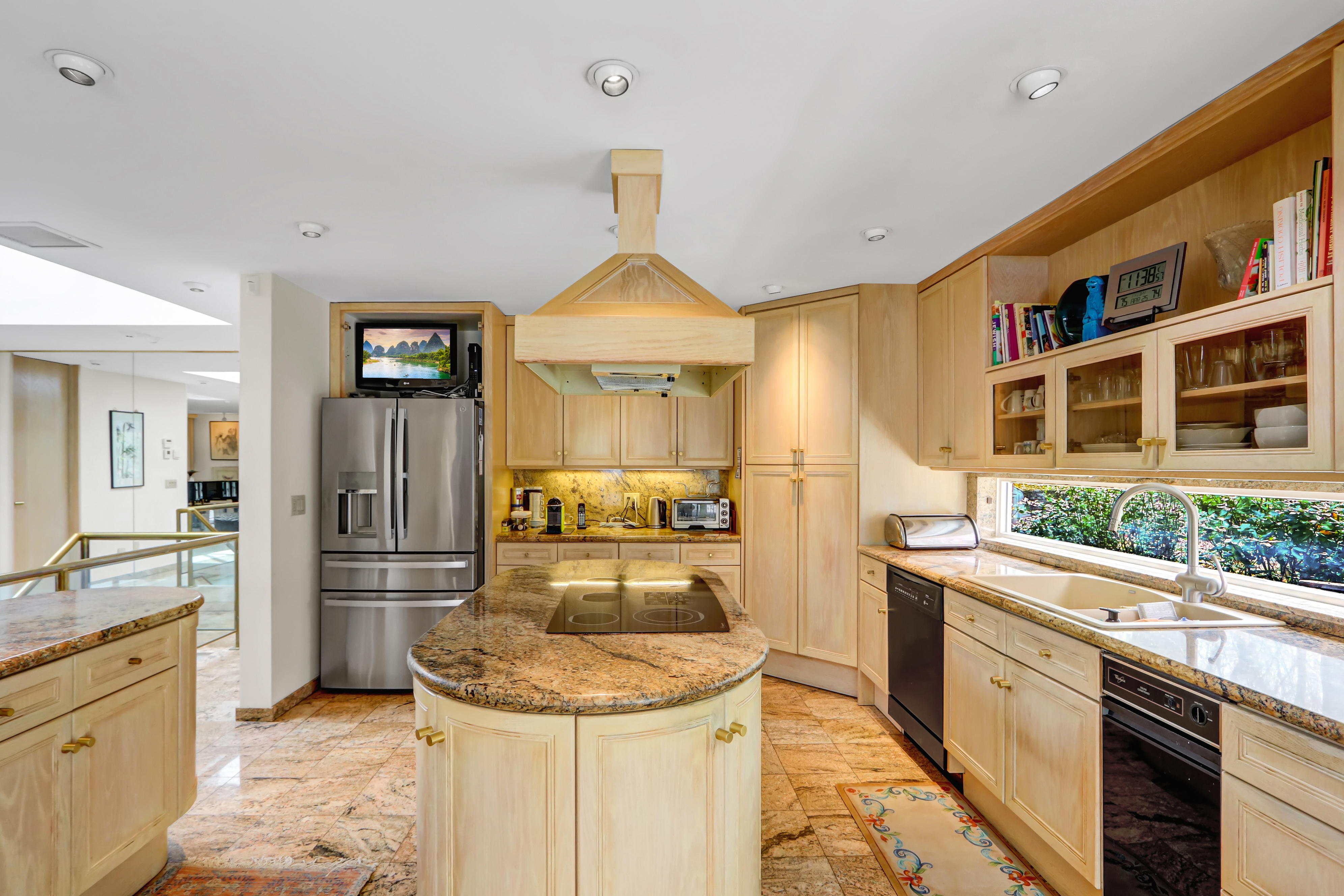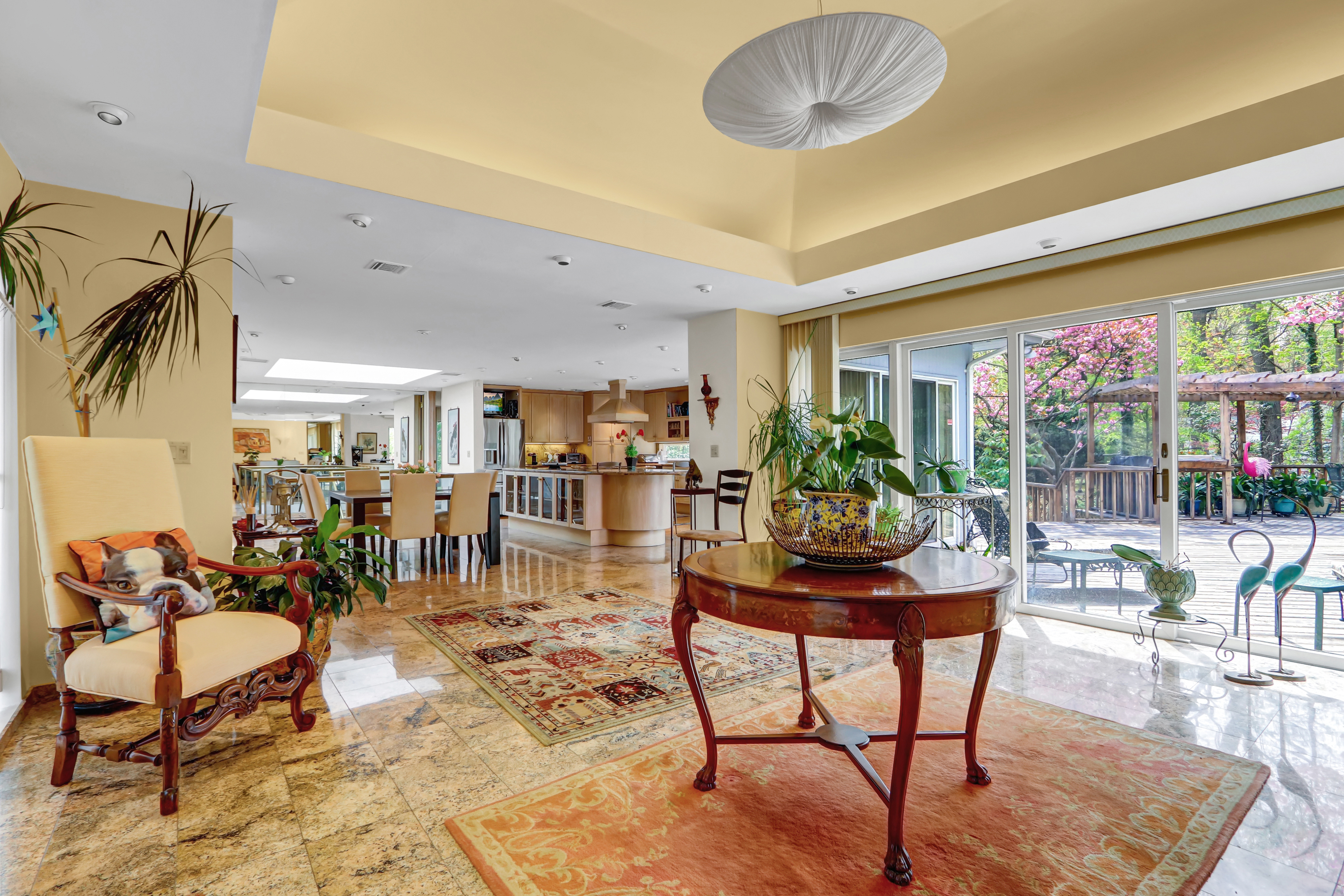 Truly Exceptional One-of-a-Kind Home in Belle Terre — Custom-built 3,300 sq ft two-level home on 1.2 acres with an ultra-open floor plan blending traditional and contemporary design. Features include a dramatic atrium dome foyer, glass/brass floating staircase, chef’s kitchen with double islands, granite floors, and custom cabinetry, all opening to a 2,000 sq ft multi-level deck with wisteria-covered pergola and built-in gas BBQ. Main level offers a primary suite with marble bath, guest suite, formal dining with marble gas fireplace, great room, and laundry. Lower level boasts porcelain floors, 37x25 family room, full Butler’s kitchen, 3rd bedroom with ensuite bath, and walkout to a brick patio. Highlights: new roof, gas hot air heat, 2-zone central air, circular drive, double garage, in-ground sprinklers, hi-hats under eaves, mature landscaping with specimen trees. Belle Terre amenities include 3 beaches, kayak storage, constable service, parks, and sports court. Walk to Port Jeff Village, country club, and ferry/train.